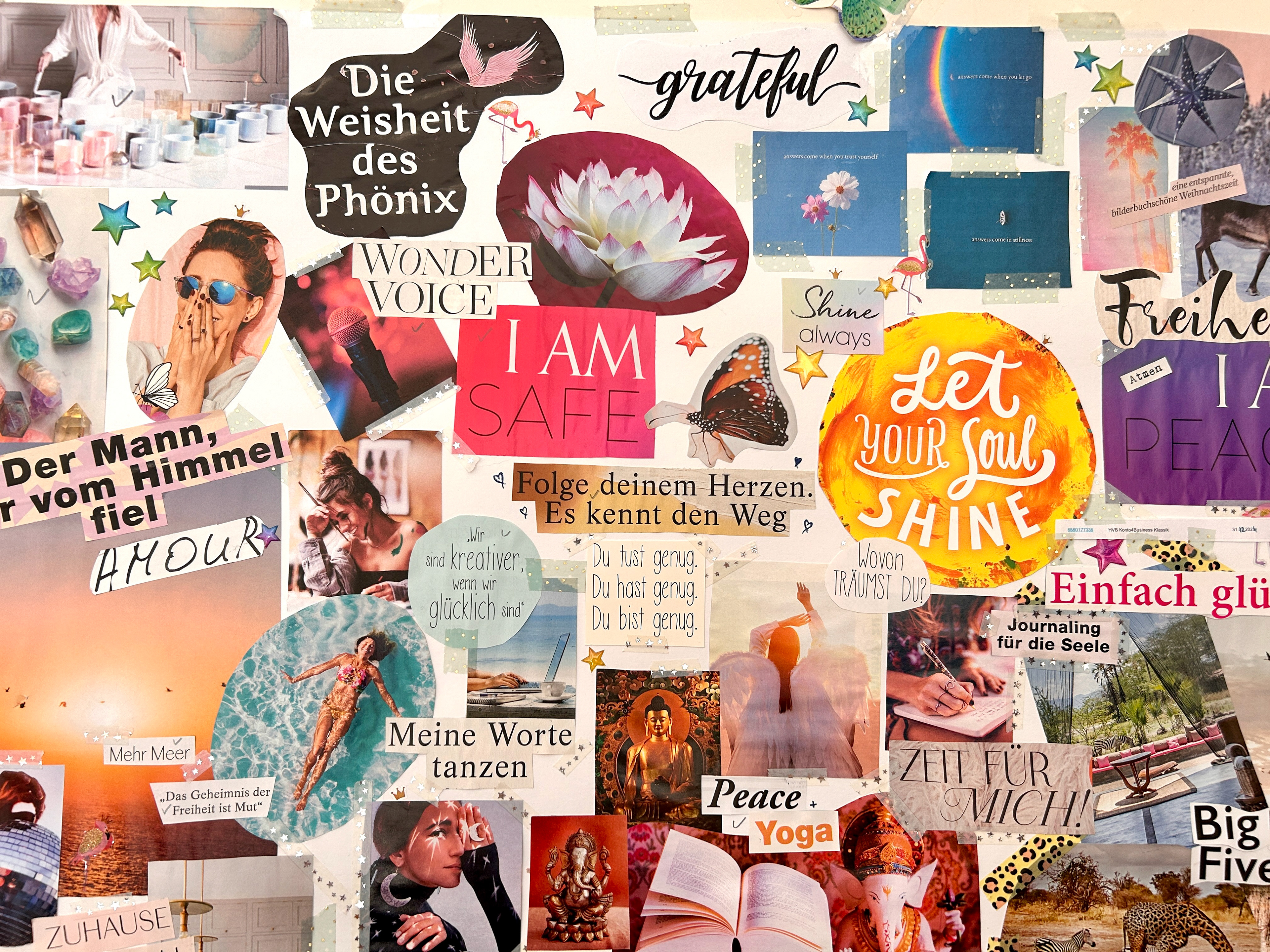 Bitte bring mit: bequeme Kleidung, Zeitschriften und/oder ausgedruckte Lieblingsbilder für dein Vision Board.